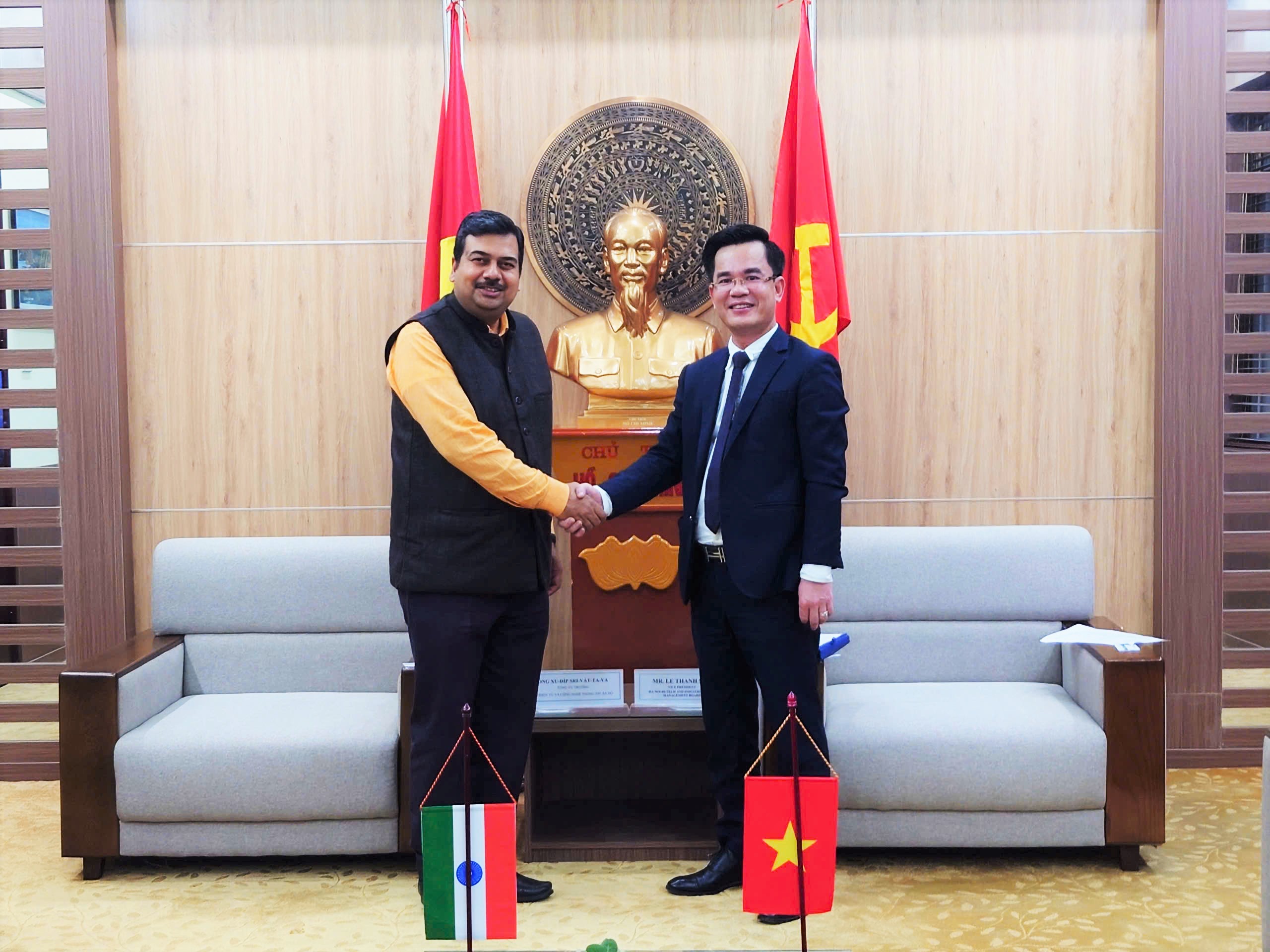 Phó Trưởng ban Lê Thanh Sơn và ông Sudeep Shrivastava - ông Vụ trưởng Bộ Điện tử và Công nghệ Thông tin Ấn Độ (MeitY)