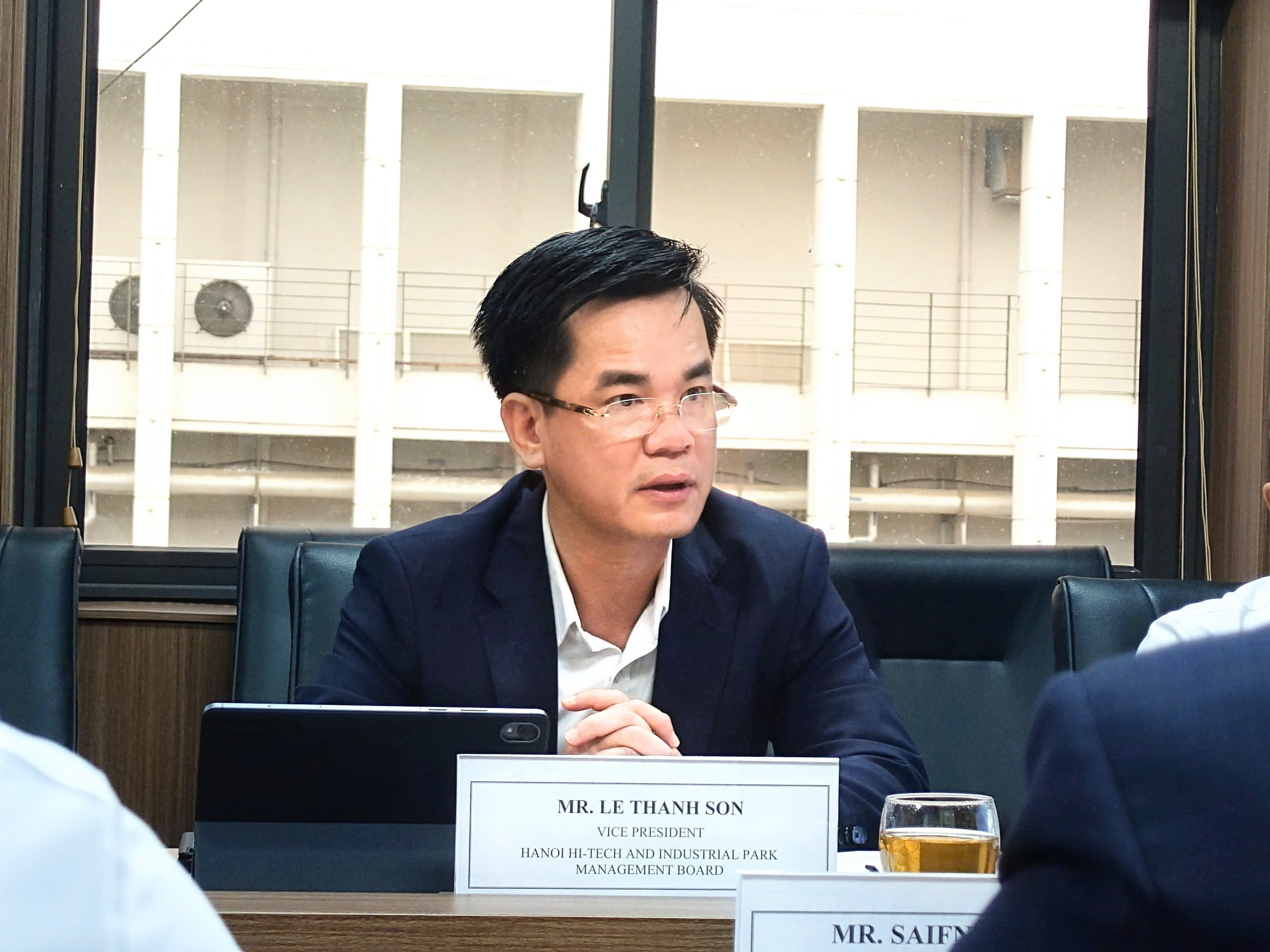 Phát biểu chào mừng, Phó Trưởng ban Lê Thanh Sơn khẳng định chuyến thăm của Đoàn có ý nghĩa hết sức quan trọng, không chỉ thắt chặt quan hệ hợp tác giữa Việt Nam và Uzbekistan mà còn mở ra cơ hội trao đổi kinh nghiệm trong việc phát triển các khu công nghệ cao và khu công nghiệp nhằm thu hút đầu tư, thúc đẩy đổi mới sáng tạo. Tại buổi làm việc, Ban Quản lý đã giới thiệu tổng quan về Khu Công nghệ cao (KCNC) Hòa Lạc, trung tâm nghiên cứu và phát triển trọng điểm của Việt Nam với quy mô 1.586 ha và định hướng mở rộng lên 2.046 ha. Dự án này đã hoàn thành hệ thống hạ tầng chính đồng bộ nhờ sự hỗ trợ to lớn từ nguồn vốn ODA của Chính phủ Nhật Bản thông qua tổ chức JICA. Hiện nay, KCNC Hòa Lạc đã hình thành một hệ sinh thái hoàn chỉnh với sự hiện diện của nhiều trường đại học lớn như FPT, Việt Nhật, Văn Lang cùng các viện nghiên cứu và cơ sở R&D trực tiếp kết nối với các nhà máy sản xuất.
